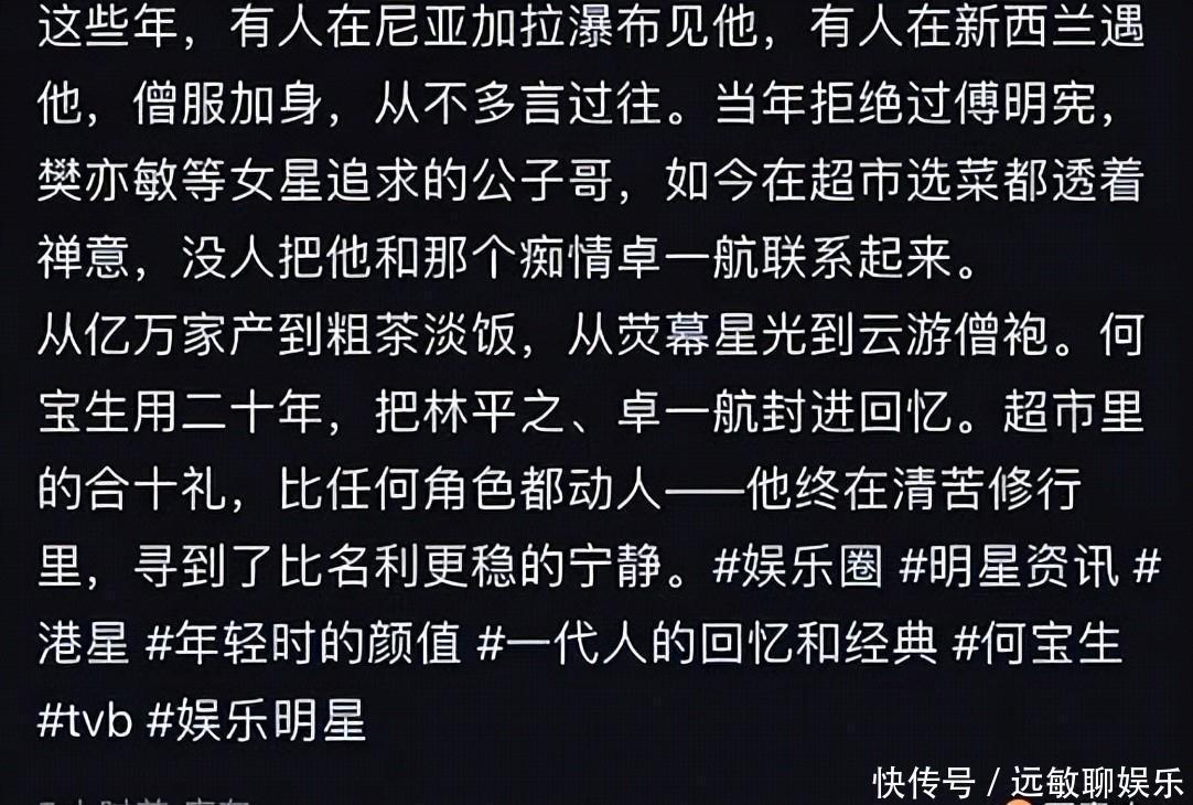 跟过去相比,何宝生的气质更温和,人也清瘦了不少。名利之外的宁静追求何宝生从明星到僧人的人生转变,让人不得不思考。他放下了光环和财富,追求内心的宁静和信仰的归属。对于他的选择,你怎么看?何宝生# #佛门生活# #人生选择# #明星故事